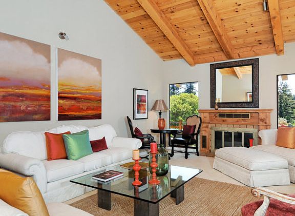 Serene Country Living on over 1 Acre! Wonderful sunny location! Chic mountain home w/ large, bright living rm w/ fireplace & exposed beam ceiling. Eat In kitchen w/ wet bar opens to family rm. Inviting solarium & numerous skylights. Rustic wood panel ceilings. Gentle slope & playground. Excellent commute location w/ easy drive off 17. Outstanding schools. 7 mi to downtown LG, 3 mi to Summit Store.