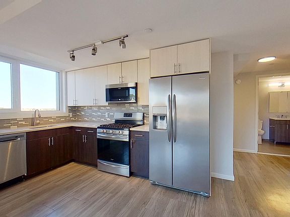 Q-East offers a great amenity package included in the rent: Fitness center, residents' lounge with coworking space and kitchenette, media center, central outdoor courtyard with comfortable seating and grilling stations, pet playground and smart laundry center. There's additional storage and in-building parking available by additional subscription.