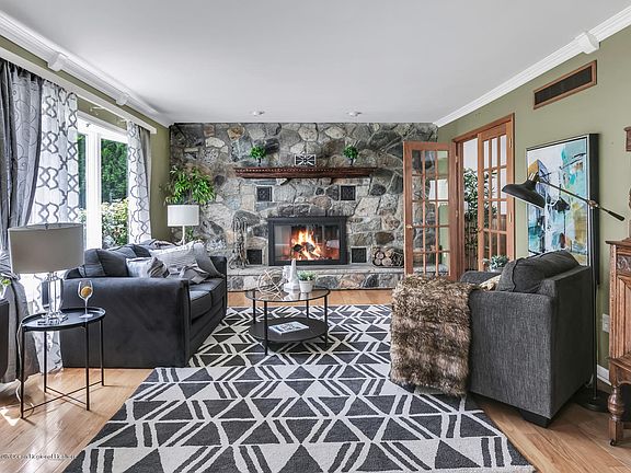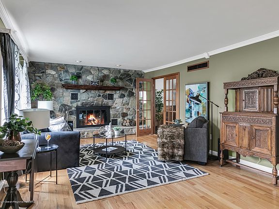- RoomLivingRoomFeatures: French Doors, Bay/Bow Window, Dec Molding, Floor - Wood, Fireplace - Woodburning