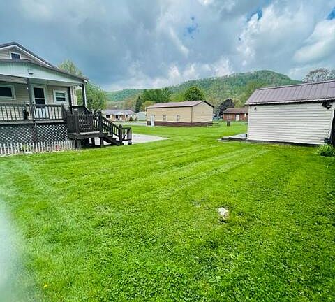 3 BR 1.5 bath, full basement,with laundry hookup and deep sink,Pantry, Eat in kitchen and dining room, front sunroom. covered back porch, cement patio 20x20ft, attached 2 car garage with laundry hookup and deep sink, carport, detached garage 24ftx40x15 with bath, outbuilding 12x12 with power, Surv. sec. system newer metal roofs, privacy fence. Elec. heat pump. Great property!