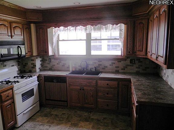 Four bedroom two and a half baths home in move in condition with 26x34 garage. Nice updated oak kitchen with appliances and tile back splash, living room with fireplace, dining room, Office and rear family room with sunken floor. Four bedrooms and full bath on second level. Divided finished basement with oak cabinets (possible 5th bedroom or hobby room) and full bath. Breaker electric, 2 gas FA furnaces with central air. Public utilities. Nice 26x34 Heated garage with 2 overhead doors and work shop with heat and AC, cement floor, breaker electric and gas heater. Workshop area. 43x140 lot size. 10 year old roof shingles. Great Opportunity! This home has many new upgrades, take advantage! Brewster Village. Call owner at 330-844-6409 for appointment