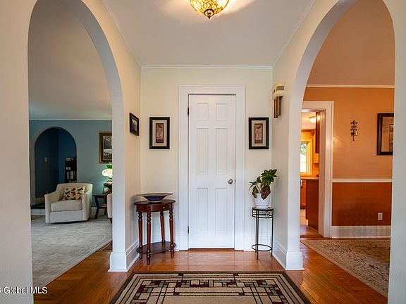 BID DEADLINE: Wed 9am. Warm and inviting, this Old Delmar colonial is the epitome of charm. Meticulously maintained, with features such as arched doorways and corner cabinets, it's the perfect blend of timeless elegance and modern comfort. Practical updates, including a new roof and newer boiler and water heater, ensure worry-free living. Step into the cozy living room with a gas fireplace, perfect for chilly evenings. The bright sunroom is filled with natural light, creating a tranquil spot to relax. Efficiently designed, the updated kitchen boasts an impressive amount of counter and cabinet space. Set on a friendly street within walking distance to so many great destinations, this home offers the ultimate in convenience. Enjoy the lushly landscaped yard, ideal for outdoor gatherings.