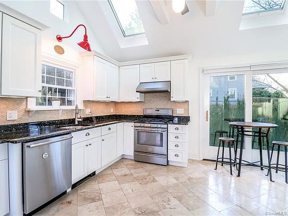a relaxed setting surrounds this stylish ranch home that's been perfectly maintained-the surprisingly spacious layout includes a living room, family room, formal dining room, and bonus den-two fireplaces-hardwood floors-arched doorways-designer lighting-richly detailed doors-glass knobs-fabulous kitchen with vaulted ceilings, skylights, wood beams, granite, stainless steel, and travertine floors-two full size comfortable bedrooms-full bath-a backyard sanctuary with wonderful courtyard style gardens, water features, and plantings-quiet and walkable stratfield village neighborhood-new energy efficient mechanicals-one year old roof-central air-natural gas-200 amp service-one car garage-laundry can be relocated-home sweet home-click to view complete virtual walk through tour...