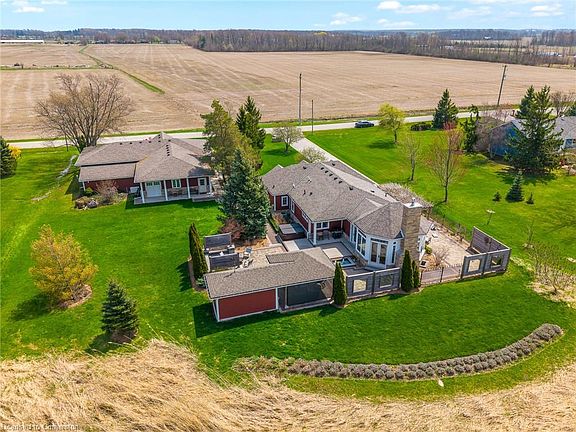 Wake up to the gentle sound of birdsong as you sip your morning coffee, watching feathered visitors gather beneath the arbor outside your kitchen window, or step outside your front door to sit beside the tranquil fish pond. This beautifully renovated home is a seamless blend of luxury and warmth, designed to embrace both everyday comfort and inspired living. From the marble waterfall counters in the remodeled kitchen to the spa-like ensuite with oversized shower and double sinks, every detail has been thoughtfully curated. The sunroom, with its cathedral ceiling and cozy gas fireplace, feels like a four-season cottage retreat, flooded with natural light. Step outside to your private retreat: a professionally landscaped yard featuring a hot tub, composite decking, and a tranquil water feature that sets the tone for relaxation. The 2,396 sq ft gas heated shop, capable of housing 8-10 vehicles, and featuring a large storage/parts room, offers endless possibilities for work or play. With a fully finished basement, two gas fireplaces, and upgrades galore, this home invites you to live beautifully without compromise.