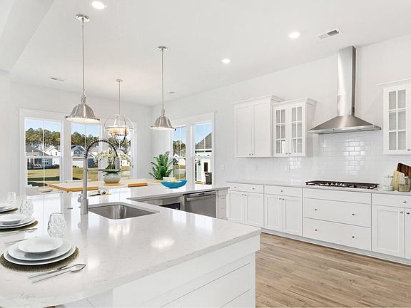 Don't miss out on the last Coosaw to be built in Carnes! This amazing floor plan is a favorite to so many, with it's detached garage located on Lake Hewitt, just a few yards away from the new upcoming amenity center. Step inside to an open foyer, formal living room that would make the perfect study, a guest bedroom and full bath. The gourmet kitchen includes a large L shaped island, double ovens, gas cooktop with hood, all open to the breakfast nook and family room. Upstairs you will find a cozy loft, 2 secondary bedrooms, spacious laundry room and guest bath. The master suite opens with double doors featuring his and hers closets, luxury bathroom with elevated vanity with dual sinks, free standing tub, separate tiled shower and private water closet.Carnes Crossroads is located in the city of Goose Creek, conveniently in Summerville, SC. You can enjoy the convenience of a growing selection of shops, restaurants and entertainment, as well as a full-service hospital and onsite K-12 school. For recreation and outdoor adventures, Carnes Crossroads features an extensive trail system dotted with parks and large lakes to offer fishing, kayaking and paddle boarding. This home is estimated to be complete May 2024.