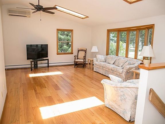 TAKE A LONG LOOK; it's a lot of house! S-P-A-C-I-O-U-S Raised-Ranch. Built in 1985, a large addition was added in 1996 when the entire house was re-sided & re-roofed to blend together. The huge master will delight with walk-in closets & generous sized master bath, oversized jetted tub for relaxing & large walk-in shower for your daily unwind. The upper level has newly refinished pegged oak floors throughout the bedrooms, halls, living room & dining area. Living room features cathedral ceiling, skylights, & Mini Split Air Conditioning. The open floor plan goes from living room to dining area with a slider to back yard deck with retractable awning- perfect for entertaining & BBQs. Kitchen has tiled floor, breakfast bar for a quick morning coffee, stainless steel appliances & a wonderful pantry cabinet. The lower level has a large room for office, playroom, or family room, exercise room & workshop area. This is a home for all seasons; a place for you and yours to hang your hearts!
