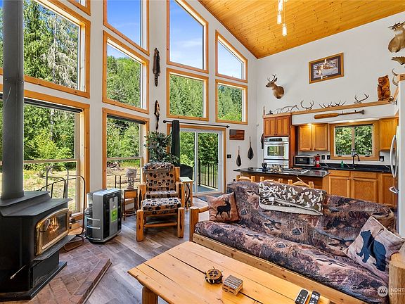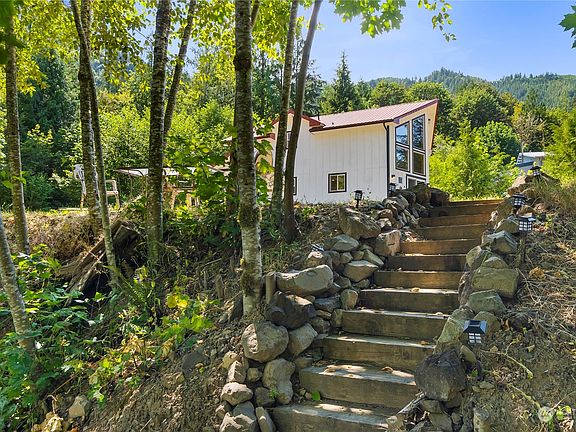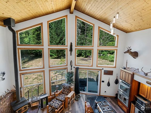 River Front Oasis - Gorgeous contemporary cabin, high and dry 15' above the Tilton River. Great retreat or work from home. Don't miss this amazing 2 bedroom home featuring vaulted ceilings w/ open space to the kitchen and living room, situated on 6 acres. One bedroom on the 1st floor & primary bed w/bath & large deck on 2nd floor. The home has a wood stove for secondary heat. The living room gable is windows for excellent light & views of the surrounding scenery. Home is wired for a generator. 200 feet of waterfront on the Tilton River! Close to Alder Lake. Come to fish, relax, and enjoy the stunning views. No HOA. Home has NO flood history and is outside of FEMA 100- and 500-year flood zones.