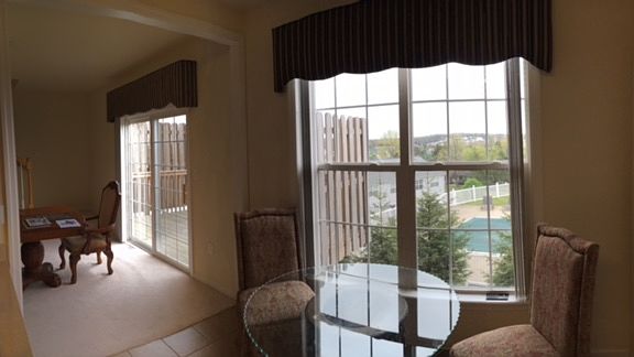 The large Manchester Unit - Eat In Maple cabinets and Corian Countertops in Eat In Kitchen with Breakfast Bar, Formal Dining Room, Grt Rm w/FP, 9'ceilings first floor, Master w/cathedral ceilings and Private bath w/walk-in shower, Jacuzzi, double bowl granite vanity, 2 additional bedrooms with cathedral ceilings, finished walk-out basement, Enormous walk in Closets on all floors, 2 floor laundry, 2 car garage, 12x14' deck, Overlooks the Pool and Panoramic Views from the 2nd Floor! Cul de Sac Street
