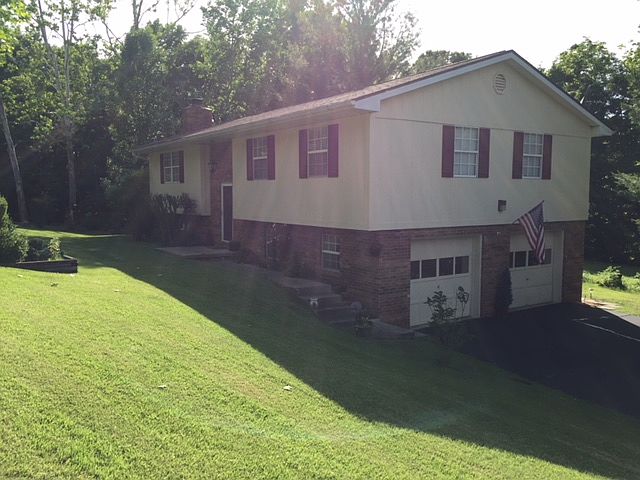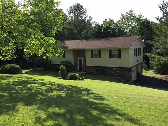 Huge yard with wooded view in the rolling hills of Greenbrier Estates! Three bedrooms with 2.5 baths (master is en suite) on great 2.5 acre lot in country setting, just minutes from town and the hospital. Newer paint in hall and and bathrooms with recently updated bathroom fixtures, shower in master, and 6-panel doors throughout. Enjoy cooking on your new Corian countertop with stainless steel appliances and grill-out on a recently painted 2nd-story deck off dining room. Cozy up to your brick-mantel, wood-burning fireplace with insert in the full finished basement. Basement includes spacious family room with pass-through bar from laundry room and kitchenette. Walk out into the gorgeous wooded setting from basement. Two-car garage with built-in workbench and exterior side door.