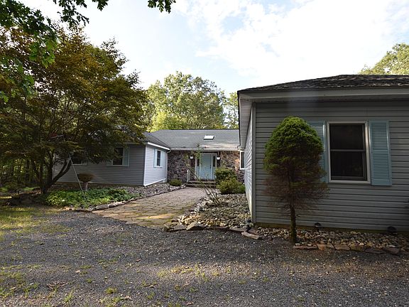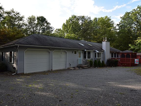 This Sprawling 3 Bedroom 2 1/2 Bath Ranch Home with 2 car garage is Nestled Away on a wooded lot in Marty Axman! Hardwood floors throughout, dual zoned heat and central air,and whole house generator are a few of the many upgrades this home has to offer! Plenty of room for entertaining inside and out. Multiple gathering areas in home such as large living room, dining room, family room with wood burning fireplace and 24x24 great room. Outdoor gathering areas such as screened in gazebo and large shed that houses hot tub. Ample storage is provided in this spacious walk out unfinished basement that has endless possibilities & walk up attic. Enter through the grand entry way or through the mud room right off the 2 car garage. Great location minutes to PA Turnpike, Pocono attractions!