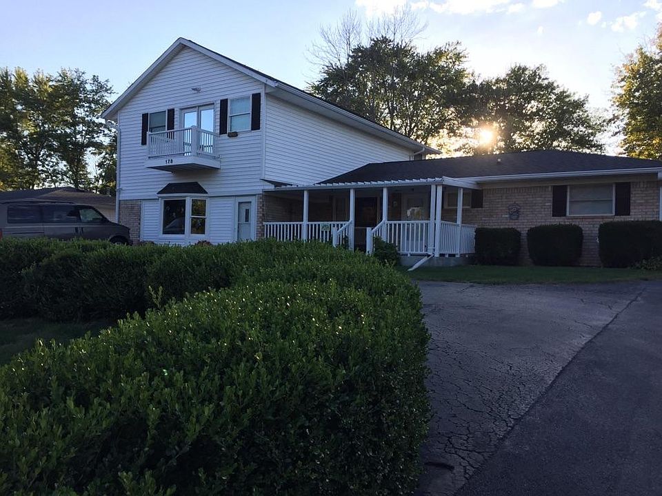 You'll be surprised...once you step inside! You will appreciate all the space and storage this home has to offer! Over 3,000 sq ft. Includes 4 bedrooms, 2.5 baths, 4 separate living spaces, covered porch, and covered patio including a standing brick BBQ grill made with cinder blocks and stainless steel doors! It's a smoker, grill, rotisserie, and pizza oven- Uses charcoal or wood! Large concrete prep station too! New furnace , A/C, and water heater! New Palestine Schools too!