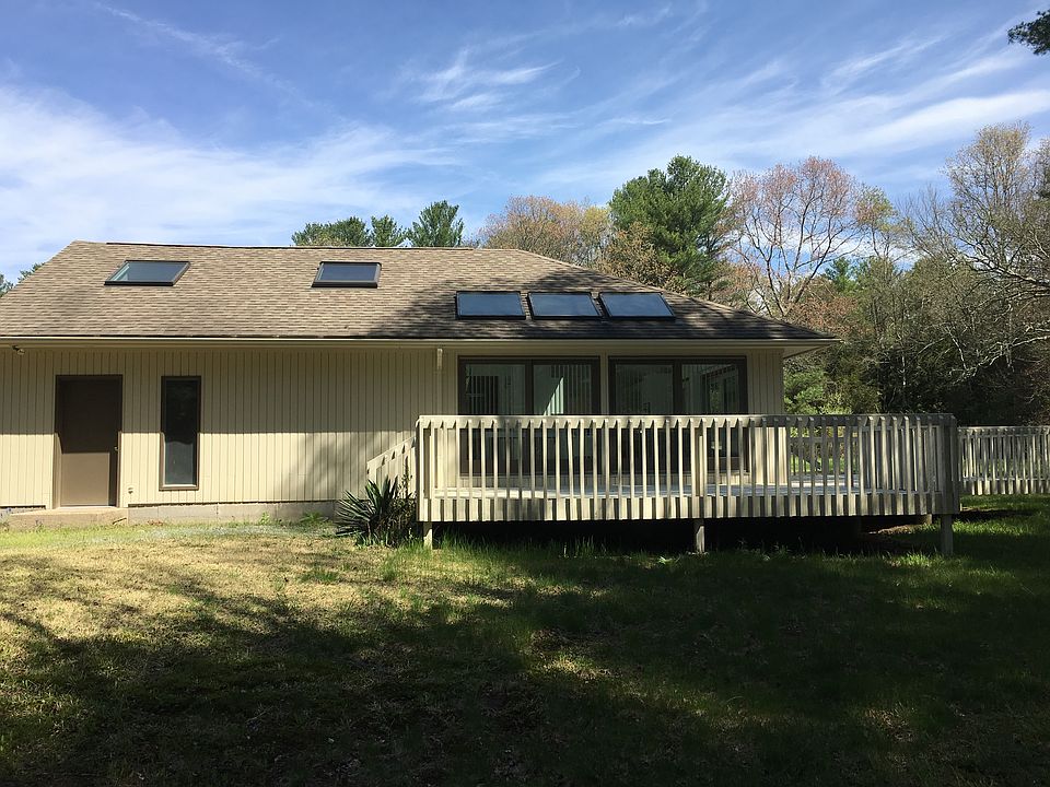 Custom and pristine 4 Bedroom, 3 bath, 2000 sq.ft.+ Ranch home set on 1+ acre bordering Preserve land great for a family. Updating to all granite baths, newer architectural shingled roof & heating system, Andersen windows & New Andersen sliders, new skylights, hardwoods, newly painted in and out. WOW factor of cathedral ceiling kitchen with Sun Room to wrap around entertaining deck, gourmet kitchen, Sub Zero refrigerator, appliances. Formal dining room, living room with fireplace, bedrooms on first floor, master bedroom w/bath. Two car huge garage. 3.5 miles to Train Station or Rte.95. The Lower level has great space too: 2 stairways for access, finished & newly carpeted family room, 2 dens/offices, rough plumbing for bath, wet bar, closets galore, workshop & utility room. 4 zones of heating in home. Neighborhood water access to Queens River.