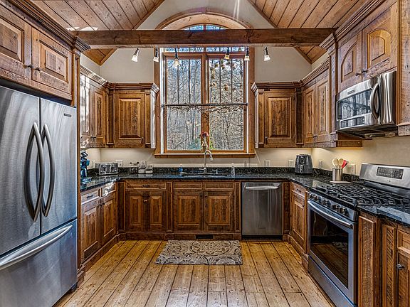 Step into luxury mountain living with this stunning 3 bed /3 and-a-half bath cabin located in the gated Wildflower community. Enjoy breathtaking views of the Appalachian mountains all year round from the comfort of your own home. This cabin boasts high-end rustic accents and real hardwood floors, creating a warm and inviting atmosphere. The main level of the home features the primary bedroom, perfect for privacy and relaxation. The upper level boasts an open-air loft, perfect for a home office or additional sleeping quarters. The two bedrooms on this level share a Jack and Jill bath and offer breathtaking views through their windows. The lower level of the home is perfect for entertaining, with a den and a foosball table. Walk out onto the patio and soak in the hot tub, surrounded by the natural beauty of the mountains. This home is a successful and ongoing rental, with custom cabinets, vaulted ceilings, and other features that make it the epitome of luxury mountain living. The Wildflower community offers amenities including a clubhouse and pool, as well as a community fire pit just steps away from the walk-out patio. This is the opportunity to make this stunning cabin your own!