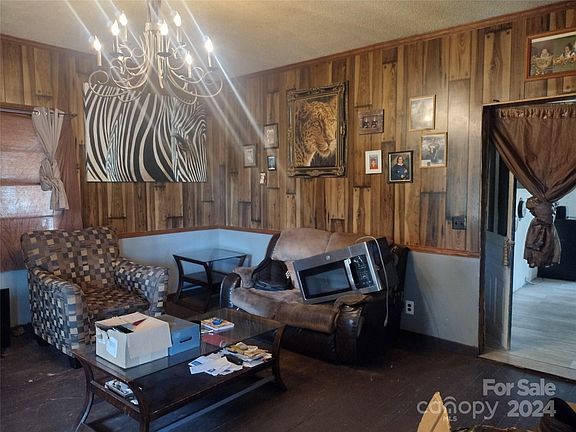 OWNER SAYS "SELL"! Cute Bungelow 3 rooms used as bedrooms but only 1 has official closet. Located in Mooresboro, NC. Hardwood floors throughout this diamond in the rough. Corner lot, large bath with laundry. Rocking Chair front porch. Huge eat in kitchen/dining. Glass doors to back where an inground pool greets you which is privacy fenced. Stairwell upstairs to bedroom with room for another if needed. Repairs & restoration needed. A large outbuilding & Workshop. Great Investor Home. Close to Broad River, Forest City and easy access to Interstate.