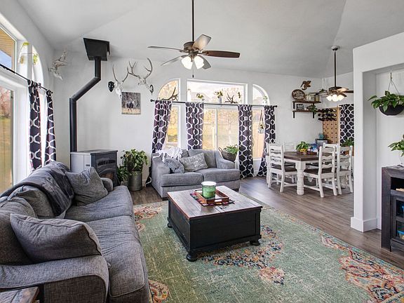 Welcome to this adorable 4 bedroom 2.5 bath home, perfect for entertaining with two living room areas, and a gorgeous back yard that has two covered awnings and a koi pond! There is new vinyl flooring throughout the home, but the original real hardwood floors are still underneath so they can be redone in the future if wanted, and the upstairs bedrooms will be carpeted before COE. There is a great area next to the home for RV parking, and the backyard is fenced and cross fenced, the yard offers mature landscaping and a dozen or more trees! The bathrooms all have new vanities and lighting. The two sliding doors are being replaced, the downstairs window by the camper is being replaced, and the damaged siding out back and by the hot tub will be replaced as well. The hot tub does not stay but the electrical will be there to easily install another one. The shed stays but conex doesn't. There will be support posts put under the awning, so it won't be taken down when the conex is moved. The roof was replaced within the last 5-10 years, septic pumped 2 years ago and put on risers. Come take a look today! Agent is related to the seller, seller is agent's mom.