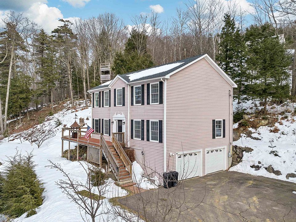 GILFORD, NH -Large Classic Colonial style home with AMAZING VIEWS of the Lakes Region! 4 Bedrooms, 2.5 Baths, 2 Car garage and a Treehouse in your back yard for the kids! Lots of room in the kitchen, plenty of cabinet and counter space, Gas Range/Stainless Steel appliances, and a wonderful layout on this Very Desirable Gunstock Acres lot. The best Lake and mountain views are from the primary bedroom! Primary bedroom offers a walk-in closet & full bath with a large step in shower! Full finished walk out basement makes a great 2nd living room and or playroom! A cozy pellet stove to adds to the ambiance on those cold winter nights. This owner added a second driveway to store a Boat, RV, snowmobile/motorcycle trailers, etc. All of this and an awesome "Treehouse", with unparalleled views of the surrounding Lakes & Mountains! You'll never find a spot like this to watch the area fireworks! Newer roof, exterior doors, refinished deck. The Perfect Year-Round or Vacation Home located just minutes from Gunstock Ski area, Resident only Gilford Beach, Bank of NH pavilion (Nearby World class Concert Venue) and Great NEW Restaurants and Theaters. Bring the family to Lake Winnipesaukee for 4 seasons of fun!
