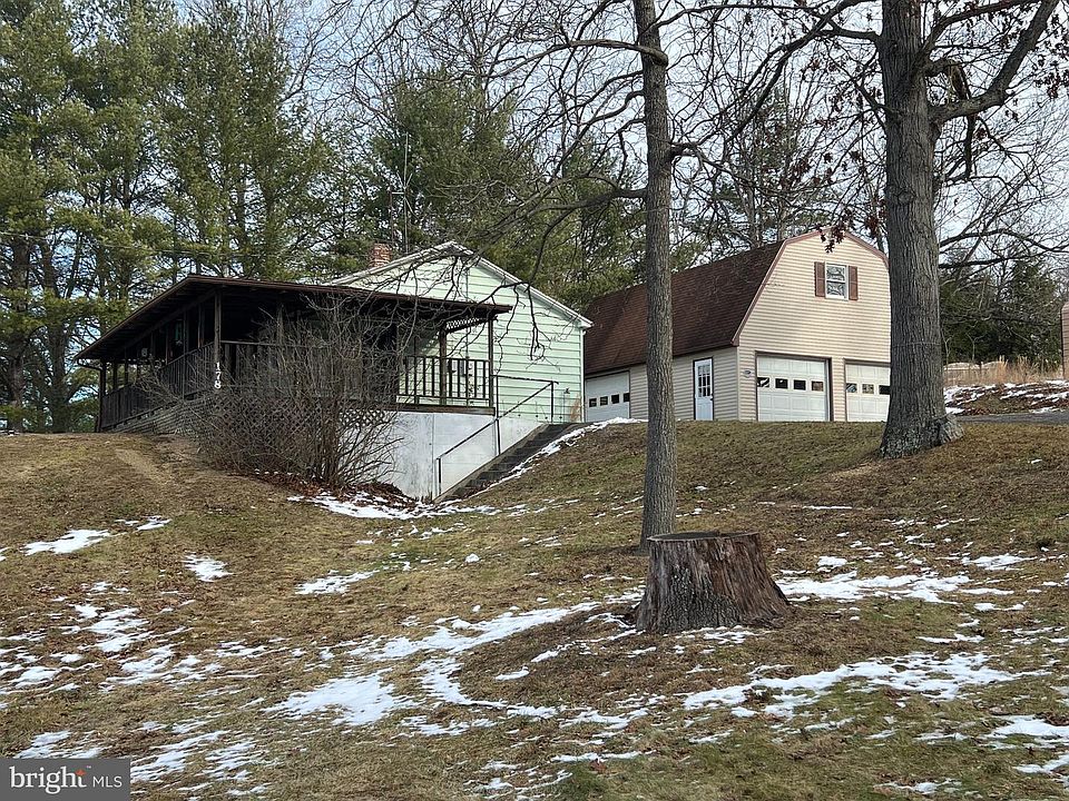 Great find conveniently located just off Route 50 West. Needs some remodeling but this will make a Great Home! Full Unfinished Basement. Central Air Conditioning. Covered Porch. Enormous 24 x 32 Three Car Garage with Second Story Storage and a 21 x 22 Two Car Garage for a total of 5 car spaces. The property is composed of two separate lots totaling 2 1/2 Acres. Additional storage shed and an old stable that would make a great chicken house.