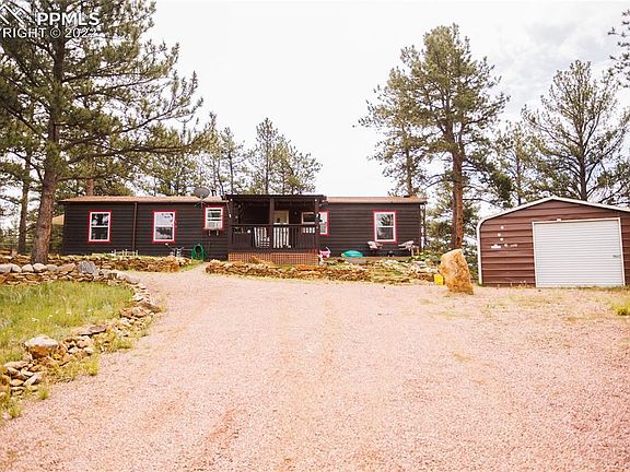 Experience the beautiful views at this mountain getaway while also being close to Woodland Park! Detached garage is oversized. Community lake is nearby. Kitchen has gas stove, bar top seating, and opens up to the spacious living room. Master has a walk-in closet and attached full bath. On the opposite side of the home are 2 more bedrooms and another full bath. Laundry space conveniently located in hallway with great storage space. Covered front porch is a great area to relax and enjoy the views and fresh air. The .76 acres and awesome views make this one a great find!