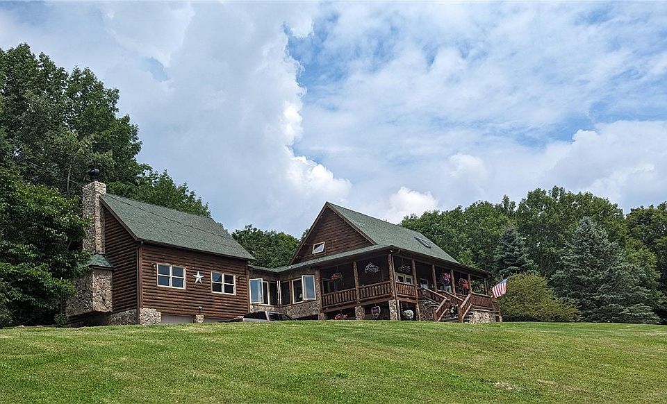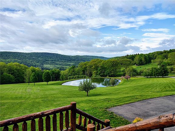 3 possible 4 bedrooms, 3 bath log home in exceptional condition on 26 + acres. Magnificent views for miles, large very clean stocked pond. Custom kitchen, plank floors, 2 fireplaces (1 gas, 1 wood). Cathedral ceilings, multiple sliding doors leading onto wrap deck. Family room with loft would be great Main bedroom on first floor. 3 heated garages. Generator, Professionally done stone work on foundation and landscaping. Nothing to do here but move in. Conveniently located between Cobleskill and Oneonta. Within 10 miles of Clapper Hollow State Park, just over an hour to Windham.
