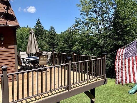 Welcome Home to Leyden! Attractive, yet practical place to call yours. Located on 5.9 acres of land just outside of town, you'll find both peace, & endless wildlife to enjoy. Home offers 3 bedrooms and 2 ¾ baths. Tastefully updated, the downstairs boasts an open design, a full bath & laundry with fresh paint and flooring throughout. Walk up stairs and you'll find a ¾ bath and two bedrooms with great natural light and hardwood flooring. Continue across the custom post & beam bridge, and enter your private, cozy, 600+ sq ft master suite! Inside you'll find beautiful beams in the cathedral ceiling with tons of closet/storage space. The bathroom offers a custom double vanity sink, relaxing claw foot soaker tub, and a tile walk in shower. Did we mention the radiant floors throughout the master or a second story deck, with your own private entrance? The two bay garage offers ample workspace with radiant flooring to help you work within it year round. Finished hobby/office space in basement