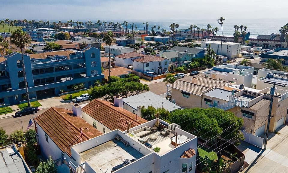Entertaining Offers Between $1,050,000 and $1,200,000. Prime Location & Rare Opportunity!! Only 1 Block to Seacoast and Around the Corner from IB Pier, Restaurants, Activities, Etc. Large Oversized Roof Deck, allows for Ocean Views, as well as of Coronado Islands and Downtown San Diego. Comes with Lighting and Water Outlet (add jacuzzi?). Nicely Fenced Front Yard, Great for a Pet or a Place to Relax Under the Shaded Patio Cover or BBQ and Entertain with Friends. Living Room Features a Fireplace, Wood Flooring, and French Doors that Open to the Front Yard. There are Many Windows for an Abundance of Natural Light throughout the Home. Kitchen has Granite Countertops, Stainless Steel Appliances, Quality Cabinets and Wood Floors. Downstairs also Includes a Dining Area, 1/2 Bath and Storage Space. 2nd Story Features 3 Bedrooms with 2 Full Baths & More Storage Space. Primary Bedroom Showcases Vaulted Ceilings, Lots of Windows, Walkout Balcony, Walk-in Closet, Spacious Bathroom with Dual Sinks, a Jacuzzi Tub and Separate Shower. Technically this is a Condo, Semi-Detached with only 1 Common Wall where the Garages Connect. Attached, 2 Car Garage is can be Accessed in the Back through Alley, where it is Equipped with Washer & Dryer Hookups. Short Drive to Military Bases, I-5, Downtown & Central SD, as well as the Border * Digitally Staged & Enhanced Photos