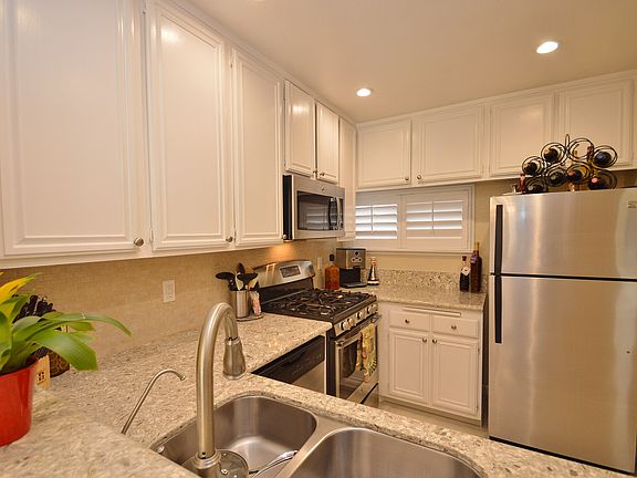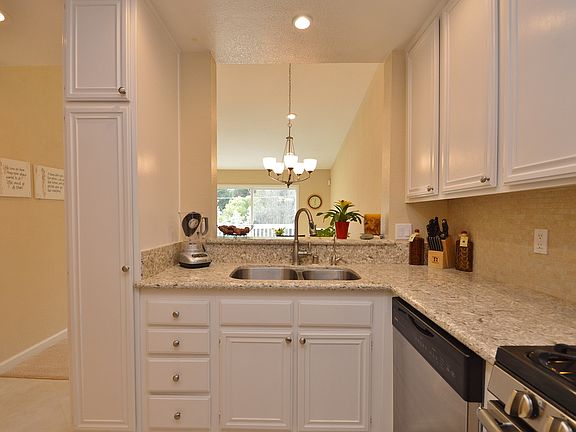 Immaculate, highly upgraded bright top unit w/deck & views. In Unit laundry. Upgrades include granite counters, dual pane windows, Stainless Steel appliances, gas stove, upgraded flooring & baths; plantation shutters. HOA amenities include pool, spa & tennis courts. Close to shops/freeway access. A 10!