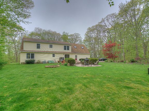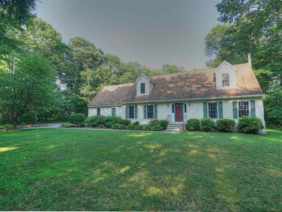 Exquisite 3 bedroom Cape Cod with 3 full baths and 2582 sq. ft. on secluded 1.84 acres in a desirable Mystic neighborhood. The open floor plan allows for easy interaction with open and bright space including a large foyer. The eat-in kitchen highlights are the pantry, island with granite top, granite counters and attractive cabinetry. Living room has wood stove. Special features of this immaculate home include central air, hardwood flooring, Thermopane windows and an upper level laundry room and family room. Master bedroom has vaulted ceiling, full bath with whirlpool tub, walk-in closet and gorgeous Palladian windows and two skylights. Full basement is partially finished. Attached 2 car garage with door opener. Underground utilities! Large backyard and shed for extra storage. An a beautiful deck that leads to a brick patio, garden area and an outdoor wood fireplace great for entertaining or just to relax by. Truly a dream home!