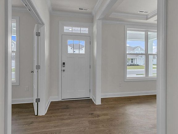 Welcome to 178 Gilmer St. at the brand-new community Eagle Creek located in Fuquay-Varina, NC! The Norman is one of our brand-new two-story floorplans featured at Eagle Creek. This home boasts an impressive level of comfort, luxury, and style, offering 5 bedrooms, 3 bathrooms, 3,262 sq. ft. of thoughtfully designed living space, and a 2-car garage. Upon entering through the front door, the welcoming foyer leads you past the flex room with beautiful French doors. This is adjacent to a formal dining area perfect for entertainment. Making your way into the kitchen you will delighted with the Normans luxury features. The Kitchen boasts a walk-in butler's pantry, an expansive kitchen island, beautiful quartz countertops, soft-close shaker-style cabinets with crown molding, and stainless-steel appliances. The Kitchen over-looks a cozy corner breakfast area, perfect for casual dining. This leads you onto the covered back patio where you can unwind after a long day. The open-concept layout integrates the main living area, which is a spacious family room. Directly to the right of the family room is a bedroom that is conveniently next to a full bathroom for easy access. On the second floor is where you'll find a loft, three additional bedrooms, each with its own walk-in closet, and two more full bathrooms. The loft offers a flexible space that can be used as a media room, playroom, or a fitness area/home gym. Off the loft is the primary bedroom thoughtfully accented with a trey ceiling. The primary bathroom features a tub and separate walk-in shower, dual vanity sinks, spacious walk-in closet, and a water closet for ultimate privacy. The laundry room completes the second floor and Norman floorplan! Eagle Creek is just 2 miles from US-401 N, allowing an easy commute to Downtown Fuquay-Varina and Downtown Raleigh, were you'll find a plethora of shopping, dining, entertainment, recreation, and much more. One-year builder's warranty and 10-year structural warranty. Your new home also includes our smart home technology package! With its thoughtful design, spacious layout, and modern conveniences, the Norman is the ideal new home for you at Eagle Creek! Schedule a tour today! *Pictures are for representational purposes only*