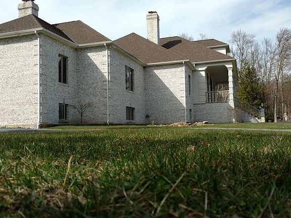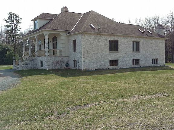 Custom 4 bedroom, 4.5 bath home on 5.17 acres. 4100 sq ft. of living space. A full partially finished basement and an unfinished attic. Covered tile porch leads to an African Mahogany front door. Brazillian cherry hardwood floors, Pella windows, 8' high doors throughout. 4 fireplaces, 12' ceilings in living room, dining, and family rooms. 10' high ceilings in rest of home. 2 boilers with 8 zones. Master suite has a sitting room with access to rear deck, huge walk-in closet, and tiled bath with jacuzzi. All other bedrooms have full tiled baths as well. Large chefs kitchen with dining area. Brick and stucco exterior. This house has it all and is situated in a quiet country neighborhood.