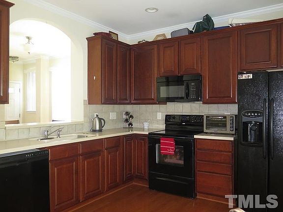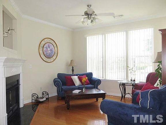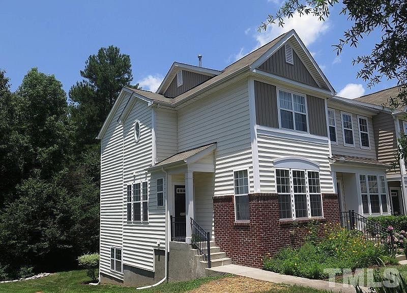 Highly desirable end unit townhome in prime Durham location. 9 ft ceilings. Hardwoods throughout 1st floor. Living room features gas log fireplace. Separate dining area. Bright and open eat-in kitchen offers solid surface tops & tile backsplash. Vaulted master suite includes walk in closet + extra closet & garden tub/shower. Fantastic. tiled lower level with gas log fireplace and full bath could be third bedroom or bonus room. Lower level also includes office. Great wooded views!