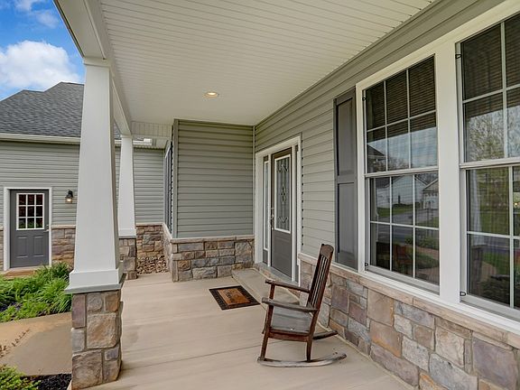 7 year old, David Lingle built rancher with 3 car heated garage. 3 bedroom, 2.1 bath. Meticulously kept, freshly painted interior and quality finishes throughout. Great open floor plan is fantastic for entertaining. The great room, kitchen, breakfast area opens to a 14'x30' covered deck and a smaller open deck for enjoying the sun and hot tub(negotiable). Kitchen features Glick built, maple cabinets, stainless appliances and granite tops. Split bedroom floor plan offers privacy. Master Bath boasts a 6' double bowl vanity, jetted tub and 5' tiled wall shower. Efficient access to master bath from Laundry room. Dining room has chair rail and crown moulding. Basement is an open palette for future expansion with a bathroom rough-in.