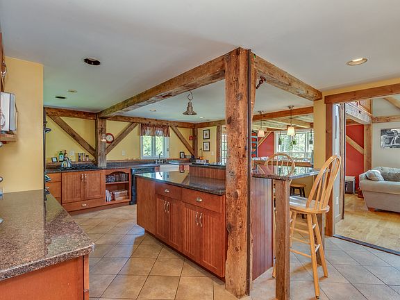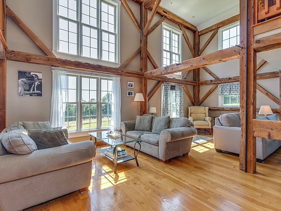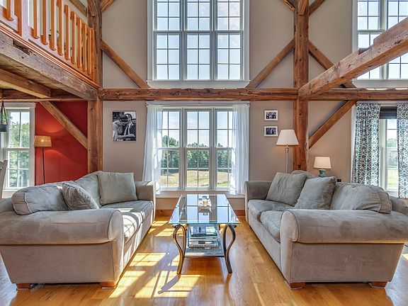 This is the one you have been waiting for! This stunning 5 bed, 4 bath converted barn home has been featured in the Union Leader's "great spaces" section and is sure to amaze. The main floor boasts cathedral ceilings, gleaming oak floors throughout, original beams and repurposed original barn wood. The sun filled chef's kitchen has custom red maple cabinetry, granite countertops with ample work space, farmer's sink, double oven, wine fridge, oversized island and plenty of barstool seating. The main floor also offers a formal dining area, 1/2 bathroom, office, spiral staircase leading to bonus loft, mudroom and access to the deck area. The second floor features 3 bedrooms, laundry room and a full bathroom. The master suite is located on the 3rd floor with amazing mountain views, gas fireplace, full bathroom with a soaking tub and shower and a ladder to access the cupola. Two car attached garage with storage loft, high velocity air flow heating/ cooling system, generator ready and underground wiring. Don't wait, this one won't last long!