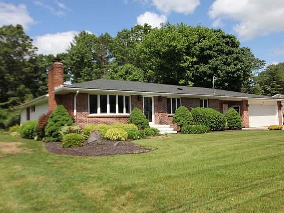 HIGHEST & BEST BY Wednesday, June 12th - 9:00 A.M. Welcome to this brick front Ranch style home located in a great family neighborhood. Three bedrooms with 2.5 baths. Kitchen flows into dining area with tile floor and a large living room with hardwood floors and gas fireplace. Nice size main bedroom has built-ins and a walk-in closet. Main bathroom has a walk in shower, tile floor and a linen closet. First floor laundry is a plus. Breezeway opens into a sun room overlooking the backyard with a concrete patio. Two car attached garage with a shed behind the garage. Roof (2021) Central air, inground sprinklers and attic fan. Partially finished basement with fireplace. New septic tank installed and Title 5 Certificate of Compliance in hand.