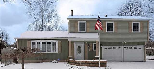 Cozy 3 Bedroom Home Set On Over 1/2 Acre! Upon entering from the brick lined walkway sunlight shining through the large window of the fireplaced living room reflecting off the gleaming hardwoods will capture your eye. The bright eat-in kitchen will be the center of casual dining while the formal dining room provides room for holiday dinners! Retreat to the finished basement for family times. In summer opening the slider allows for family fun on the patio & deck looking out into the spacious back yard w/ storage shed. Large Master & 2 addt'l bedrooms. Comfort on 1/2 acre waiting for you!
