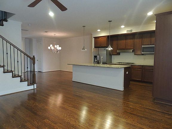 Beautiful Townhouse in the desirable community of Creekside Park. This property features wood floor throughout downstairs, stairs and Master bedroom. Very open concept with spacious gourmet kitchen with island, granite counter top and stainless steel appliances. Washer, Dryer and Refrigerator included. Master suite and 2 Bedrooms up. Master bath with shower, new granite countertop with a large deep sink. Sprinkler system and fully fenced in back patio. Alley access. Yard Maintenance by HOA. Sprinklers. Close to village green retail!!