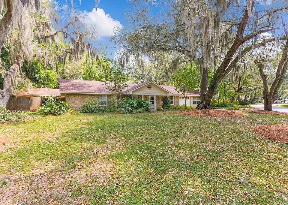 A traditional brick ranch, this home has two living spaces and a huge back yard. Enter the roomy foyer, it immediately opens to a large open living area. There is a formal dining room and galley-style kitchen. The living room opens to the family which could also be an office. The ADA feature of 36" doorways! Down a hallway are 3 bedrooms. The master bath has a walk-in/roll-in shower with grab bars. This home has plenty of storage, a back patio, large oaks that provide shade, and a garage that has laundry and is partially finished. It's in a convenient location, close to shopping, restaurants, FLETC, St. Simons and Jekyll Islands. Double lot could possibly be split or build a secondary building.