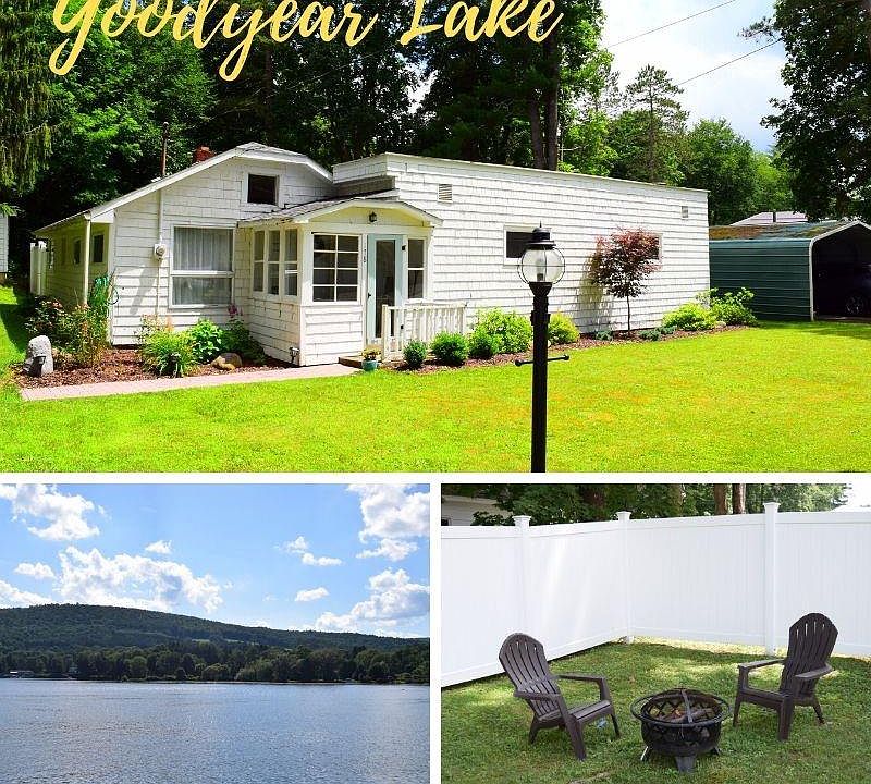 Welcome to the lake! This Goodyear Lake Cottage boast many renovations! Beautiful new kitchen, bathroom and laundry. Everywhere you look are upgrades tastefully paired with the charming history of the cottage. Hallway and laundry room are adorned with hand painted accents, as is the enclosed front porch. New roof and well pump. New fence encloses large and private backyard. Paved driveway with carport in addition to garage. Lake access is just steps away!