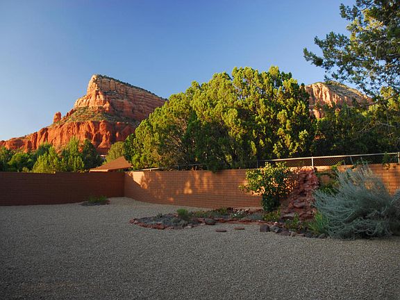 Located in popular Chapel Area (on a dead end street) approximately a few houses from hiking trails, this private and newly remodeled home with Red Rock and Chapel views, awaits you. 3BR, 2BA home with gourmet kitchen, new appliances, granite counters and backsplash, new cabinetry, adjacent to a storage room and laundry on .44 acre is one of a kind. Guest bedroom has additional space for office or sitting area. Master and guest baths have travertine stone and have been completely updated, including energy efficient toilets. Hickory wood plank flooring, interior doors are new, new GFCI's, interior drywall with double insulation attached to plywood, new drywall garage, well insulated. New windows installed with E-glass. Enclosed backyard is very private with covered and uncovered patios.