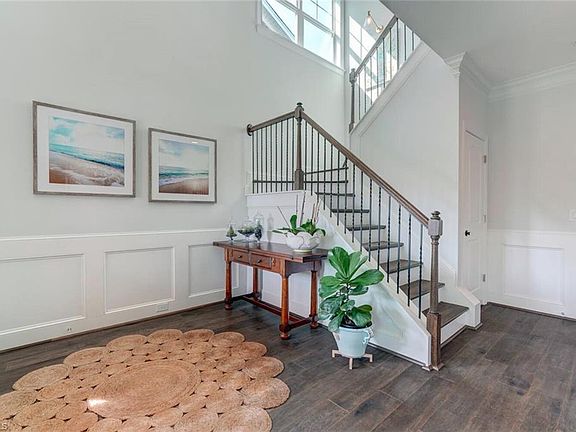 Featured in a Better Homes and Gardens magazine, you could own this amazing home with interior designer touches throughout! The designer took this open floor plan with high ceilings & created “traditional with a twist.” Combining premium light fixtures with pops of accent color & heavy moldings, a spacious as well as elegant look is created. With board-and-batten wainscoting, rich colors & surprise decorator closets, this home never disappoints. A huge island, brass-finish cabinet hardware and faucet, herringbone backsplash & quartz counters elevate this kitchen. The designer-worthy primary suite on the main floor features a trey ceiling, large walk-in closet with great shelving and en-suite bath. This wonderful 4 bedroom home has it all, including a flex room on the main floor, perfect for an office or study. Neighborhood amenities include yard maintenance, a community pool, event house & exercise room within a three minute walk. Convenient to Elon University, shopping & Interstate.