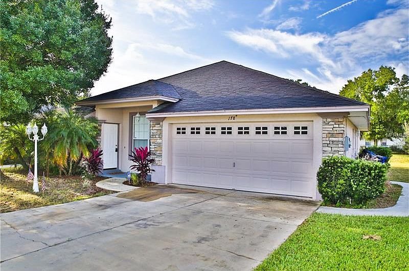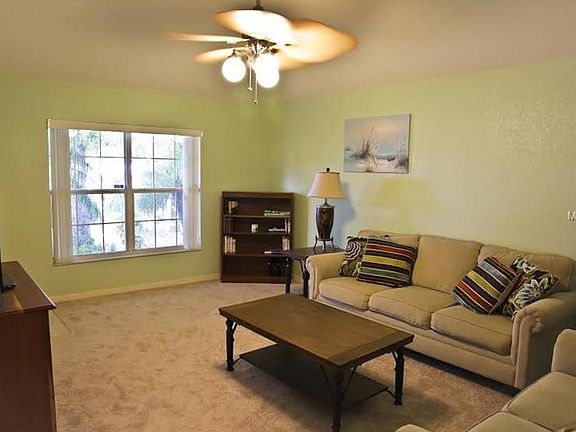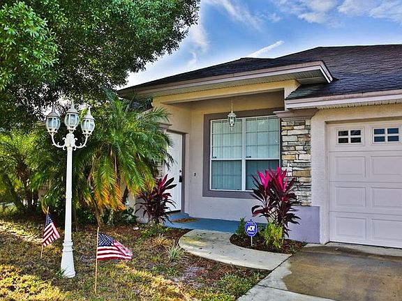 Welcome HOME! Located in a quiet neighborhood with LAKE ACCESS, this three bedroom/ two bathroom home is ready for you to move right in! Convenient to shopping, I-4, and only 20 minutes to Disney. The stone facade on the garage welcomes you into the entry to the open split floor plan with vaulted ceilings. The formal dining area features beautiful laminate flooring. The kitchen includes stainless steel appliances, recessed lighting, and ample cabinet space with possible eat in area or den. Featuring ceramic tile in kitchen, bathrooms, eat-in areas, hallways, and entry. Stainmaster carpet in living rooms and bedrooms is brand new, and fresh paint throughout. Master suite has a walk-in closet, on suite bathroom with dual sinks, separate shower, a Garden tub, and water closet. The large backyard is perfect for family time or entertaining- including a hot tub on the screened lanai. Upgrades include 30 year hip roof, double pane windows, rounded corners, and ceiling fans, and irrigation system. This is a perfect home for first time buyers or a second home!