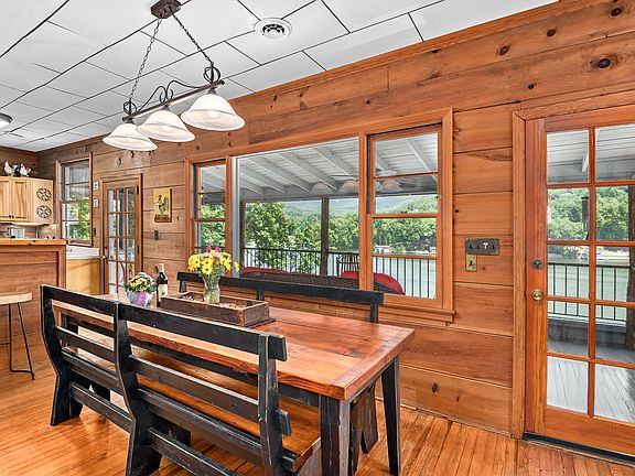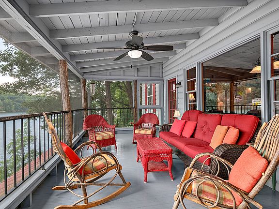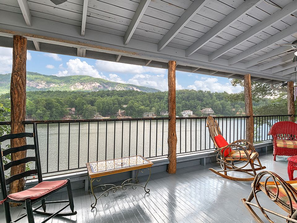 he indoor living space will make you feel at home, but the real magic happens when you step onto the porch and greet the beautiful Lake Lure! This classic lakefront house features three porches, a fire pit, and dock. We have a great view, overlooking the mountains, Rumbling Bald Ridge across the lake, and the spots of some famous scenes from Dirty Dancing. The Space The Enchanted Cottage has four bedrooms, each with a queen-sized bed, plus two twin beds in the downstairs rec room. All linens are provided, along with additional blankets for chilly nights. There are three full bathrooms, equipped with towels, soaps, and shampoo. Our large dining table seats 8, and nearby bar stools seat two more. We have board games, puzzles, and a foosball table for rainy days and family time. There is a full kitchen with a drip coffee maker, microwave, crockpot just about everything you need. The cottage has central AC and heat, but you may end up not using the AC, as the cool breeze off the lake feels fantastic! A gas log fireplace is there to warm you up in the chillier months. Our large, screened porch with two ceiling fans is perfect for rocking, dining, playing games, napping, or listening to music (and it's big enough for everyone). The outdoor fire pit is a great spot for making S'mores and reconnecting. Guest Access Total access to the whole house and all of the porches/decks/docks you can handle! You can get to the main floor by simply riding the funicular, but you'll need to walk down a couple of flights of stairs to get to the dock. One important note - our tram adds an incredible amount of convenience, but it is not always available 100% of the time. Power outages or maintenance issues sometimes mean the tram won't be available. Anyone staying with us needs to understand that climbing the stairs may be necessary. This is a fully furnished house that includes all utilities.