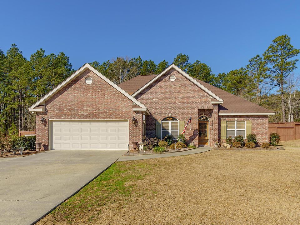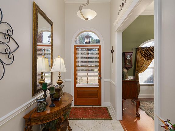 The kitchen was beautifully remodeled just two years ago, showcasing sleek granite countertops, stainless steel appliances, and an extended bar perfect for entertaining. Adjacent to the kitchen, you'll find a cozy reading nook and a spacious breakfast area that flows into the great room with an electric fireplace. The formal dining room is accented with elegant wainscoting and provides additional entertaining space. This split-plan home offers two bedrooms on each side, with the front guest bedroom currently serving as a charming office complete with built-ins. The primary suite features a step-up ceiling, a spacious walk-in closet with built-in shelving, and an en suite with a separate tub and shower.