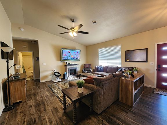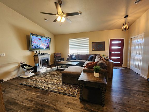 Charming One-Level Home in Stonebridge Farms Addition – Nestled on the north side of town, this beautifully maintained home offers a perfect blend of comfort and modern amenities. With an open-concept living, dining, and kitchen area with stunning cathedral ceilings, the home feels bright, warm,and spacious.  Kitchen Features:  Notty pine cabinets with soft-close doors.  Uplighting under the cabinets for a warm, inviting ambiance.  Gorgeous quartz countertops and tiled back splash that complement the high-end finishes.  A built-in wine cabinet and a large pantry for all your storage needs.  Upgraded Samsung appliances, including a smart fridge and a gas oven/stove.  A sliding door leads to the backyard, perfect for easy access to outdoor entertaining.  Home Layout:  3 Bedrooms, 2 Bathrooms: Two generously sized bedrooms are located on one side of the home, with a full bath and linen closet in between.  The primary bedroom offers a tranquil retreat, with a tray ceiling, bay window, and a large walk-in closet. The attached ensuite features an oversized shower with a rain showerhead, double sinks, and ample counter space for convenience.  Heating & Cooling:  Dual heating systems, including forced air with central air and in-floor heat, extend even to the garage for year-round comfort.  The 2-car garage is insulated, has sheet rock, and includes a floor drain for added functionality.  Outdoor Features:  The yard has been professionally landscaped with sod, a variety of plants, 2 apple trees, and pine trees, providing a serene and private atmosphere.  A sprinkler system keeps the landscaping lush and healthy.  Fenced-in yard with a built-in firepit, shed, and patio for outdoor relaxation and gatherings.  There is also a camper or trailer pad, making it easy to store your RV or trailer.  Community Amenities:  Stonebridge Farms offers residents a lovely park with a basketball court and scenic walking trails for outdoor recreation.  This home offers an exceptional blend of luxury, convenience, and community, making it an ideal choice for anyone seeking a peaceful and modern lifestyle in a prime location. Don't miss out on the opportunity to make this beautiful home yours!  * The shelving in the garage DOES NOT convey with the property. New waterheater in Feb 2025  SPECIALS!! Pending Storm Sewer District #124    estimated amount = $710.66   This is the total estimate.  The amounts for the parcels are quite small compared to previous special projects because of the number of properties that will benefit from the project.  This results in a smaller proportionate share.  This project has not yet started so the earliest it will be sent to the County is in the fall of 2026.        Paving District 476-Final payment was sent to the County and will appear on the 2024 property tax statement