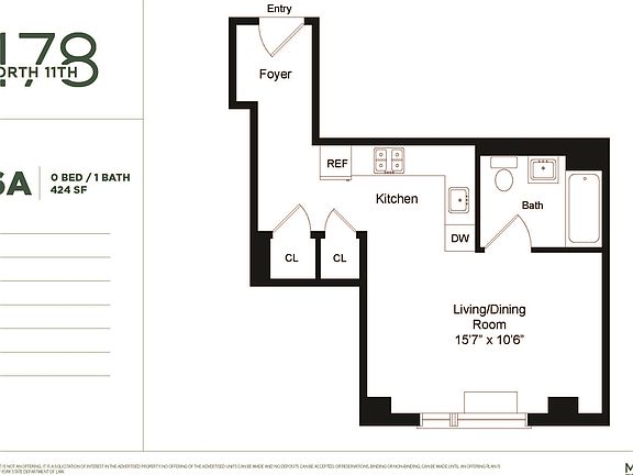 Beautiful Studio Apartment Available 7/3 in Williamsburg! One block from McCarren Park, 178 North 11th Street is a brand new collection of 49 boutique residences epitomizing stylish and practical living. This is a sun-lit, beautifully-appointed studio apartment. The spacious unit features high ceilings, large windows, and an over-sized layout providing ample space. The custom Italian kitchen has Aspen Oak base cabinetry and glossy lacquered upper wall units, Caesarstone countertops and premium appliances, including a dishwasher. The spa-like bathroom features bright white lacquer Italian vanities, Toto toilets, Kohler medicine cabinets, and gleaming Grohe fixtures. Other unit features include: - Washer/dryer in unit - Stainless steel appliances - Ample closet space - Blackout shades Building amenities include: - Landscaped roof deck - Gym - Virtual doorman - Bike storage - Parking garage - Storage units available Over-sized, double-glazed windows allow sunlight to illuminate the sophisticated interior design, artfully finished with a neutral color palette and wide plank wood floors. Elegantly appointed and meticulously designed, these apartments are perfect for entertaining and relaxation. **Images are for illustrative purposes only and may not reflect this exact unit Equal Housing Opportunity.