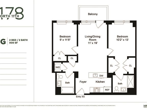 Beautiful 2-Bedroom Apartment with Private Balcony Available 7/29 in Williamsburg + 1 Month Free! Contact us to: 1. Arrange Contactless Access 2. Watch a Video Tour 3. Schedule A Virtual Walkthrough With An Agent One block from McCarren Park, 178 North 11th Street is a brand new collection of 49 boutique residences epitomizing stylish and practical living. This is a sun-lit, beautifully-appointed two bedroom apartment with a private balcony. The unit features a custom Italian kitchen with Aspen Oak base cabinetry and glossy lacquered upper wall units, complemented by a soft fusion of light grey and white Caesarstone countertops and premium appliances. The bathroom features bright white lacquer Italian vanities, Toto toilets, Kohler medicine cabinets, and gleaming Grohe fixtures. Over-sized, double-glazed windows allow sunlight to illuminate the sophisticated interior design, artfully finished with a neutral color palette and wide plank wood floors. Elegantly appointed and meticulously designed, this apartment is perfect for entertaining and relaxation. Amenities include: - Landscaped roof deck - Gym - Virtual doorman - Bike storage - Parking garage - Storage units available - Washer/dryer in-unit Photos are of similar unit. Price is net effective with 1 month free on a 12-month lease. Equal Housing Opportunity!