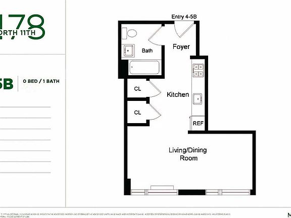 No Fee and Pay the Amortized Rent During the Lease Term! Contact us to: 1. Arrange Contactless Access 2. Watch a Video Tour 3. Schedule A Virtual Walkthrough With An Agent One block from McCarren Park, 178 North 11th Street is a brand new collection of 49 boutique residences epitomizing stylish and practical living. This is a sun-lit, beautifully-appointed studio apartment. The spacious unit features high ceilings, large windows, and an over-sized layout providing ample space. The custom Italian kitchen has Aspen Oak base cabinetry and glossy lacquered upper wall units, Caesarstone countertops and premium appliances, including a dishwasher. The spa-like bathroom features bright white lacquer Italian vanities, Toto toilets, Kohler medicine cabinets, and gleaming Grohe fixtures. Other unit features include: - Washer/dryer in unit - Stainless steel appliances - Ample closet space - Blackout shades Building amenities include: - Landscaped roof deck - Gym - Virtual doorman - Bike storage - Parking garage - Storage units available Over-sized, double-glazed windows allow sunlight to illuminate the sophisticated interior design, artfully finished with a neutral color palette and wide plank wood floors. Elegantly appointed and meticulously designed, these apartments are perfect for entertaining and relaxation. Images are for illustrative purposes only and may not reflect this exact unit -The price advertised is for 10 Weeks Complimentary on a 12 Month Lease. Equal Housing Opportunity.