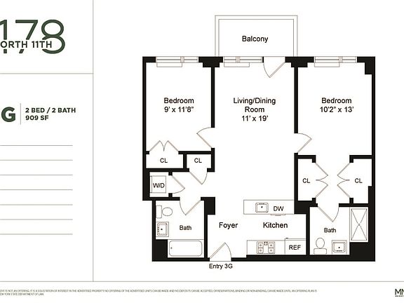 Beautiful 2-Bedroom Apartment with Private Balcony Available in Williamsburg + 9 Weeks Complimentary! Contact us to: 1. Arrange Contactless Access 2. Watch a Video Tour 3. Schedule A Virtual Walkthrough With An Agent One block from McCarren Park, 178 North 11th Street is a brand new collection of 49 boutique residences epitomizing stylish and practical living. This is a sun-lit, beautifully-appointed two bedroom apartment with a private balcony. The unit features a custom Italian kitchen with Aspen Oak base cabinetry and glossy lacquered upper wall units, complemented by a soft fusion of light grey and white Caesarstone countertops and premium appliances. The bathroom features bright white lacquer Italian vanities, Toto toilets, Kohler medicine cabinets, and gleaming Grohe fixtures. Over-sized, double-glazed windows allow sunlight to illuminate the sophisticated interior design, artfully finished with a neutral color palette and wide plank wood floors. Elegantly appointed and meticulously designed, this apartment is perfect for entertaining and relaxation. Amenities include: - Landscaped roof deck - Gym - Virtual doorman - Bike storage - Parking garage - Storage units available - Washer/dryer in-unit Photos are of similar unit. Price advertised is for 9 weeks complimentary on a 12-month lease Equal Housing Opportunity!