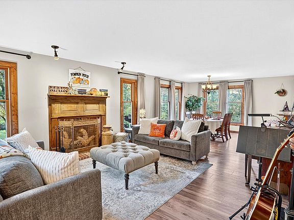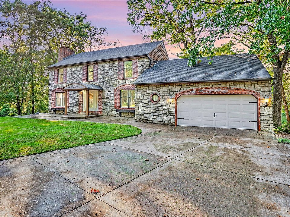 Tucked away on a quiet cul-de-sac, this gorgeous stone two-story with a walkout basement sits on just over an acre surrounded by mature trees, offering privacy, charm, and space to truly breathe. From the moment you pull up, the stone and brick exterior, custom woodwork, and warm lighting set the tone for what's inside.Step through the front door and you're welcomed by bright, open living spaces filled with natural light and beautiful updates throughout. The living room feels cozy and inviting with its wood-burning fireplace, while the kitchen steals the show with rich custom cabinetry, granite counters, stainless steel appliances, and a walk-in pantry that make it both functional and stunning.The main-level primary suite is its own retreat, complete with a private sitting area and access to the deck overlooking the trees, perfect for your morning coffee. Upstairs, you'll find three spacious bedrooms, including one with a private en suite.The walkout basement is where this home really shines, completely transformed with luxury finishes, wide-plank flooring, a custom wet bar, LED accent lighting, and plenty of room for entertaining or relaxing.Step outside and you'll find multiple decks, a private pool with a custom wood surround, and a peaceful, park-like backyard that feels like your own getaway.Every detail of this home was designed with comfort, style, and function in mind, offering that rare mix of warmth and sophistication you just don't find every day.