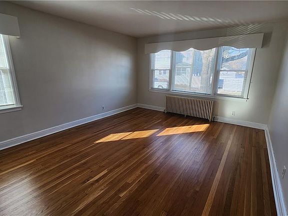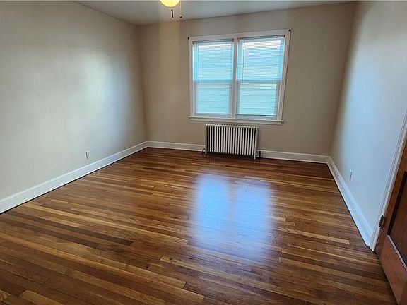 Heat, hot water & water included in rent. Spacious two bedroom, one bath first floor rental in three family home. Beautiful refinished hardwood floors sparkle throughout except kitchen. As you enter the front door, there is a entryway with large closet. Opening to the light and bright living. One bedroom has a closet and an additional walk-in closet that can be used as home office space. Second bedroom is very spacious as well. Washer/dryer hookup in basement along with storage space. Street parking. Credit score of 650 minimum. No prior evictions will be considered. Two months security. Proof of employment. Absolutely no pets, sorry!