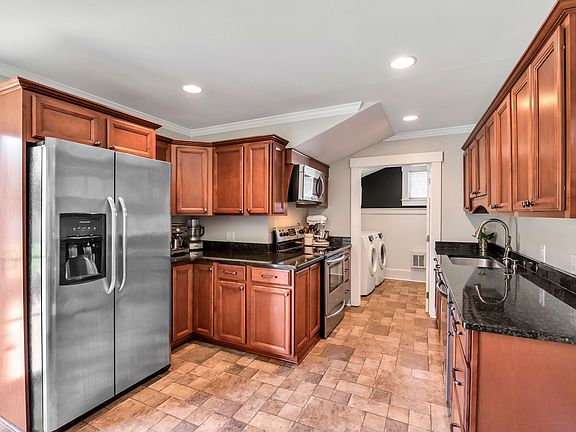 Move right into this beautiful, sun-filled 19th Century Colonial with 3 bedrooms and 1.5 baths. The spacious eat-in kitchen featuring stainless steel appliances and granite counters flows into the family room with an energy efficient pellet stove and decorative fireplace. The lower level also includes an additional bedroom or private in-home office and tranquil, sunny living room. Upstairs are 2 bedrooms with skylights and vaulted ceilings and the newly renovated full bath. There are various places to relax in the private, oversized fenced yard, which boasts a brick patio, firepit and mature trees. A detached 1-car garage offers ample storage. The location can't be beat, with close proximity to the center of town, schools, walking trails and highway access. Don't miss this warm and unique home!